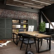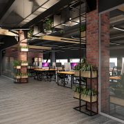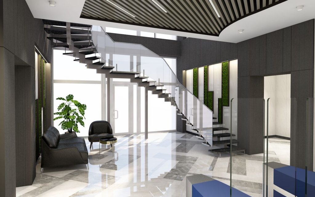 Каждый из этажей БЦ имеет свои отличительные особенности и оформлен в разных стилях. Так, один из этажей выполнен в стилистике Ralph Laurent, другой – стиле Лофт, в оформлении третьего использованы мотивы Арт Деко и так далее.