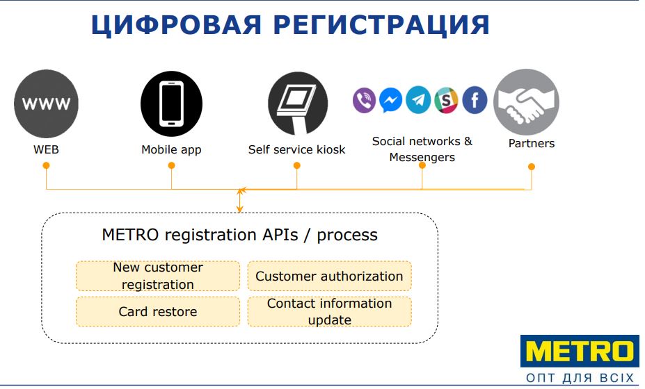 Однако, несмотря на успешное использование новых возможностей, в Metro Cash&Carry Ukrainе не собираются отказаться от традиционных карточек, так как они играют важную роль для создания эффективной CRM. Карточка – это идентификатор клиента, и Metro знает всю историю его покупок: что он покупал, когда и как часто. Это большой объем данных, который позволяет делать клиенту предложения, от которых он не сможет отказаться.