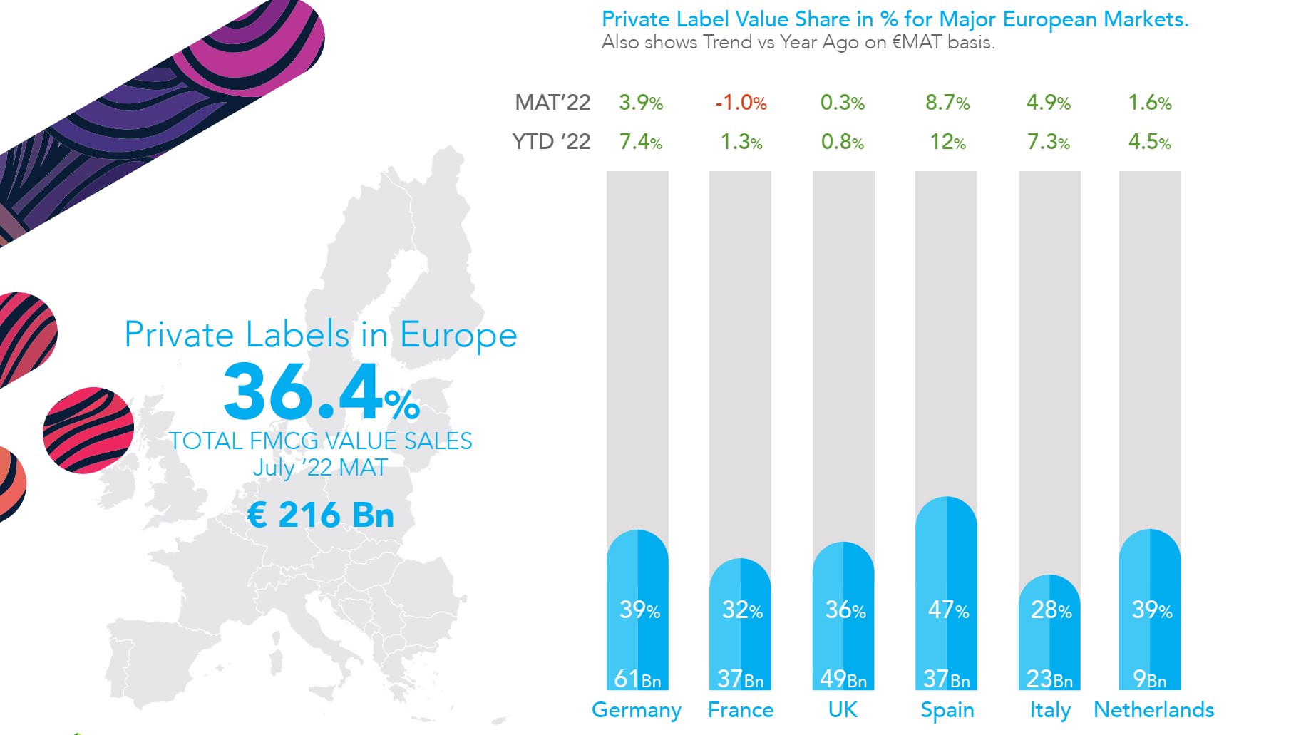 В нынешней инфляционной среде собственные торговые марки возвращаются к допандемическому уровню, показывая увеличение продаж на 5,4% в Европе, до 216 млрд евро или 36,4% всех товаров повседневного спроса.