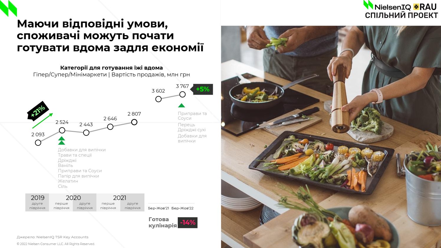 RAU в партнерстве с аналитической компанией NielsenIQ представили спецпроект: исследование основных трендов ритейла 2022 года. Где, в частности, были обнаружены ключевые изменения в том, что и как покупают украинцы и на что нужно делать акцент ритейлерам в своей работе.