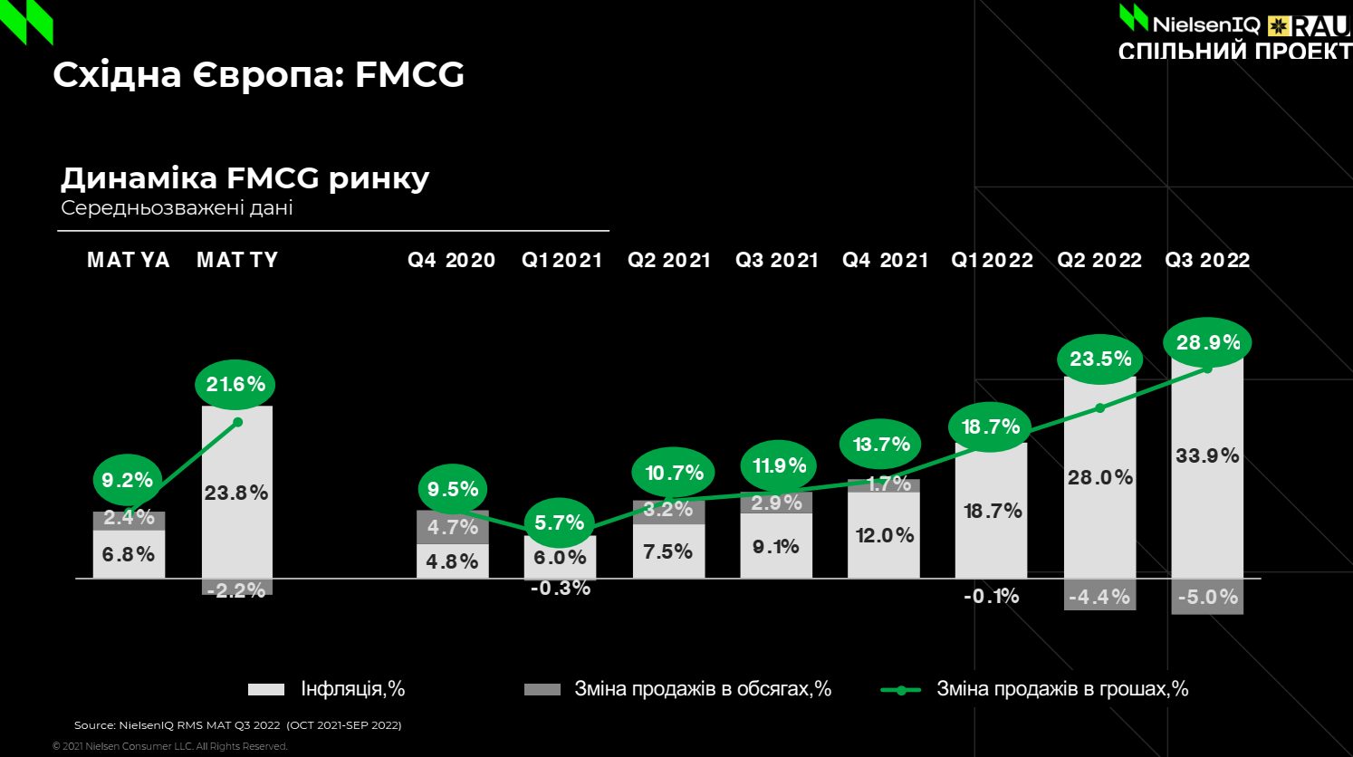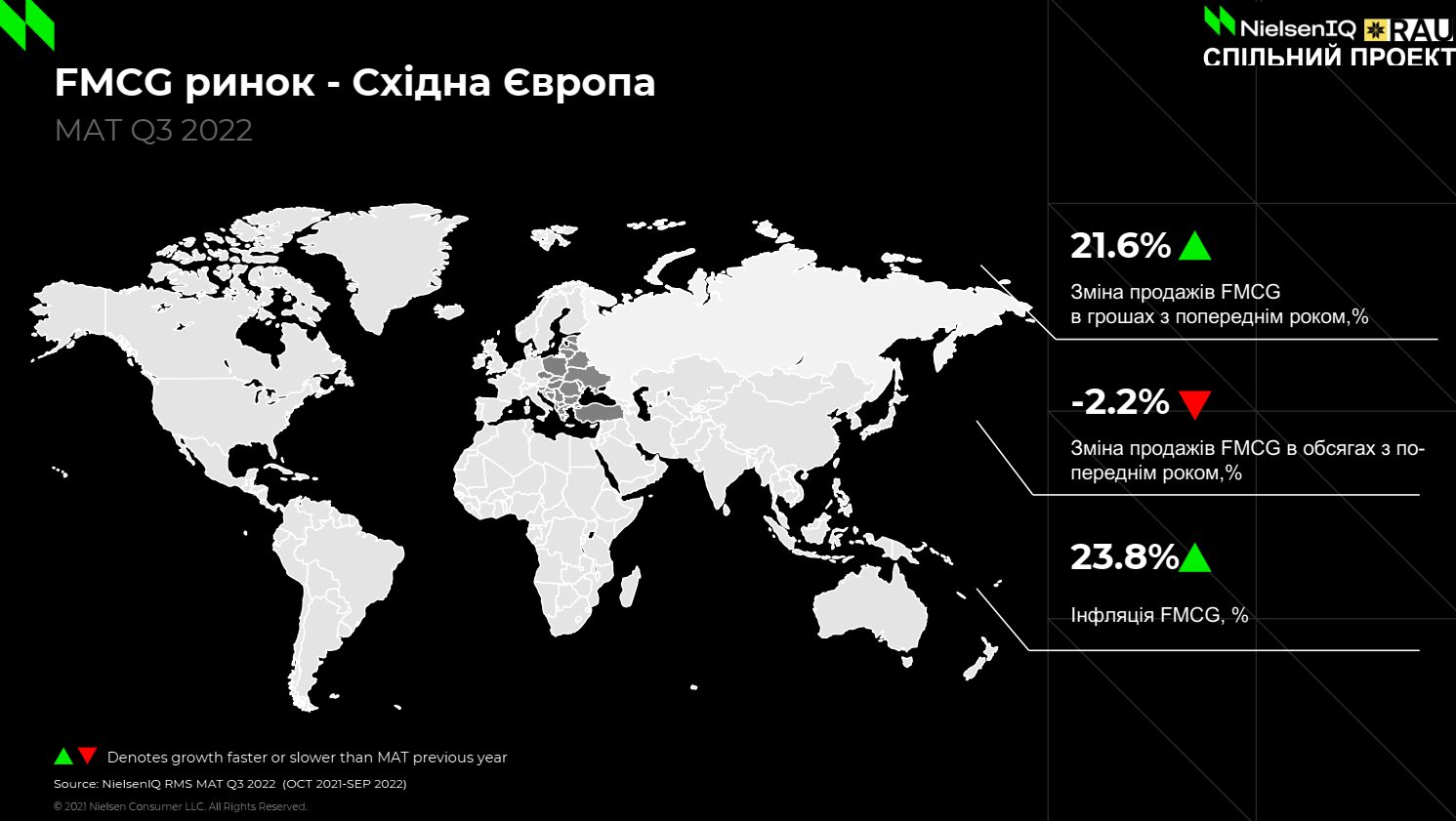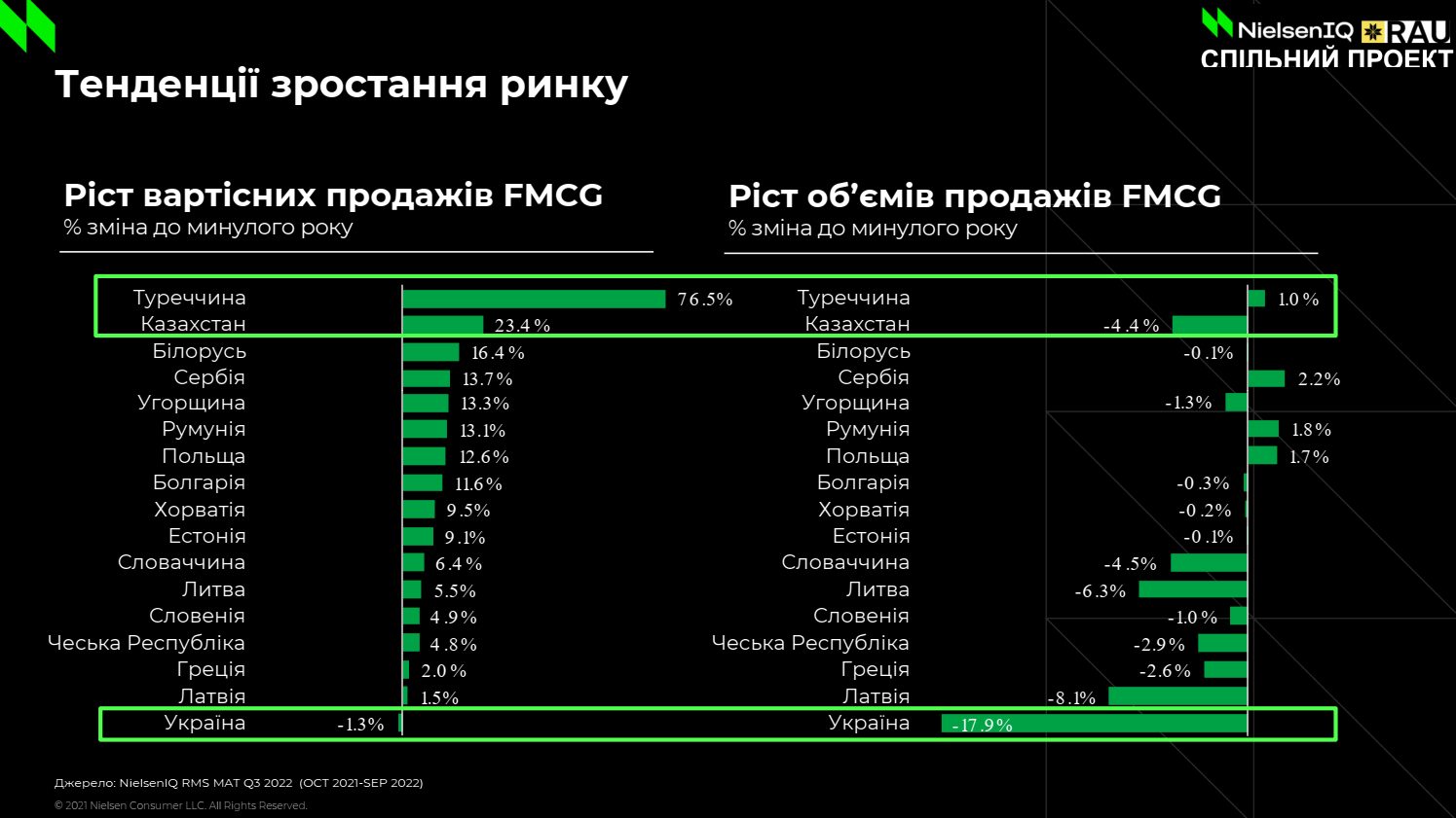 Украина занимает особое положение. У нас безумное падение объемов продаж, однако выручка остается почти неизменной, то есть основной вклад дает инфляция. Поэтому здесь важно понимать не только что покупают, а также кто и где.