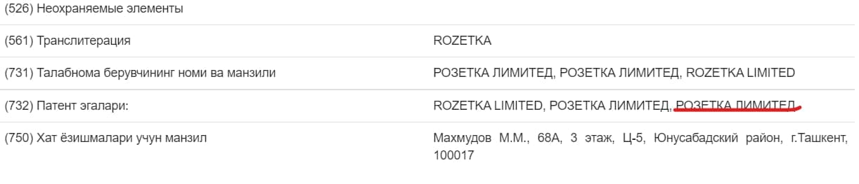 Об этом сообщает портал Kapital.uz. Компания зарегистрировала в Узбекистане свой логотип и товарный знак «РОЗЕТКА Лимитед», а также его транслитерацию ROZETKA LIMITED.