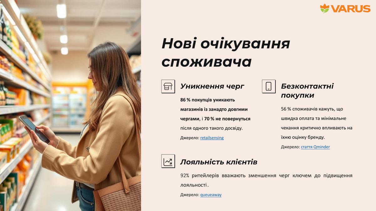Современный ритейл требует новых решений, чтобы соответствовать ожиданиям потребителей. Критическая проблема современного ритейла – это очереди. Так, 86% покупателей избегают магазинов с длинными очередями, а 70% не возвращаются после одного негативного опыта ожидания. Это не просто неудобство для клиентов – это серьезные финансовые потери для бизнеса.
