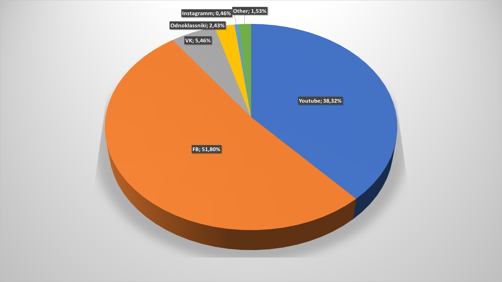 Если же анализировать траффик из социальных сетей отдельно, то он обеспечивает всего 4,68% переходов на сайт продавца. И основными поставщиками траффика остаются Facebook – (43,31%) и YouTube (39,79%). И тут стоит отметить рокировку этих двух каналов: год назад картина была диаметрально противоположная: YouTube обеспечивал 44,57% переходов из соцсетей, а Facebook – 38,81%. Очень интересная тенденция и может заставить призадуматься маркетологов, делающих ставку на видеоконтент и похожие «штучки».
