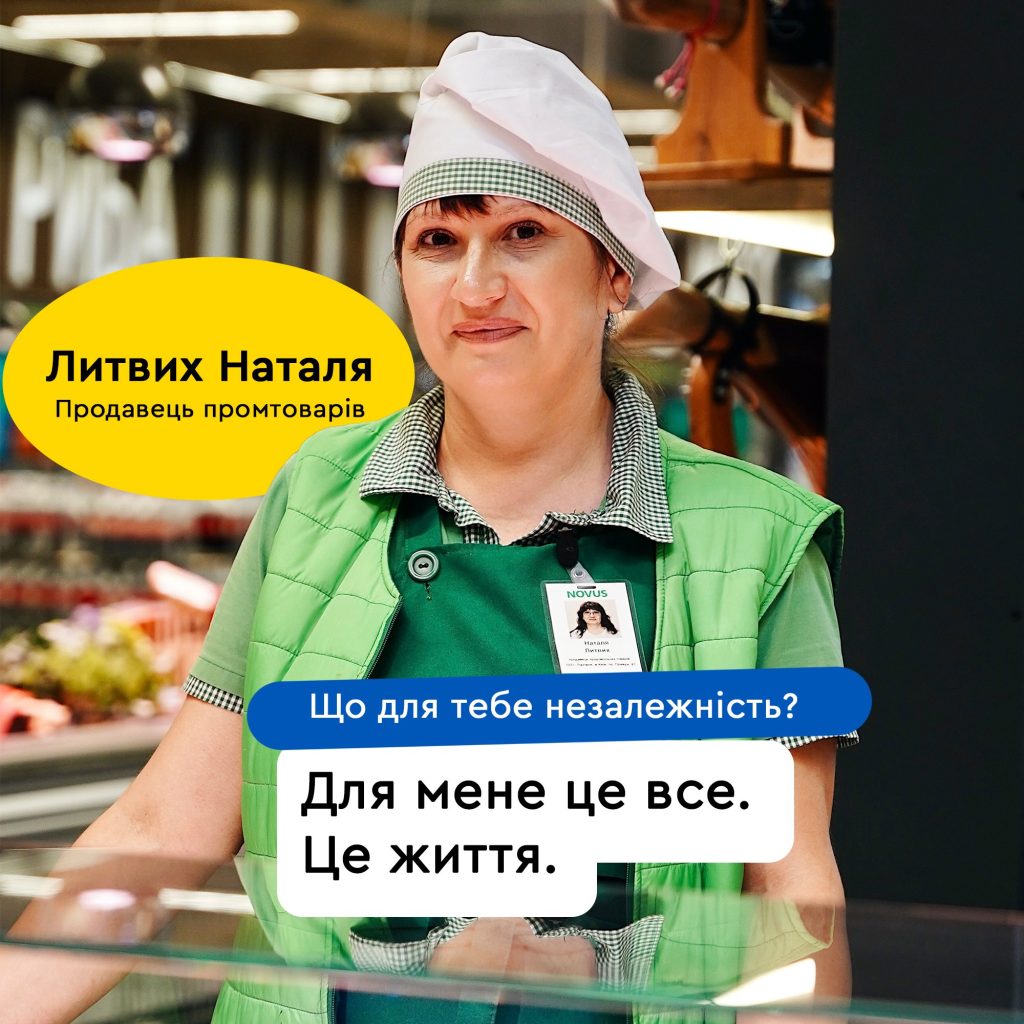 Литовская сеть Novus расспросила сотрудников своих магазинов, что для них независимость. “Ни одно оружие не возьмет страну, в которой знают, что такое независимость. С праздником, дорогие! Держим строй, бережем Украину и друг друга!” – задекларировал