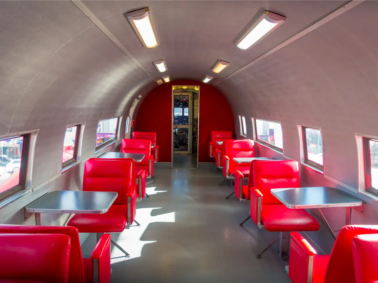 Несмотря на внеземный вид, меню стандартно для США. Однако именно интерьер делает обед в этом месте незабываемым.