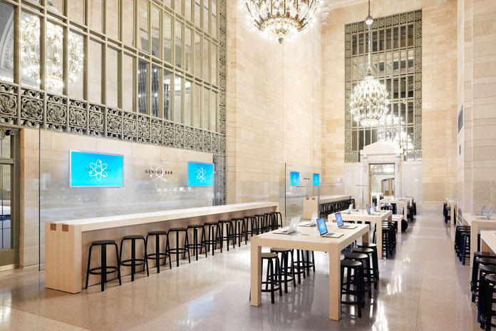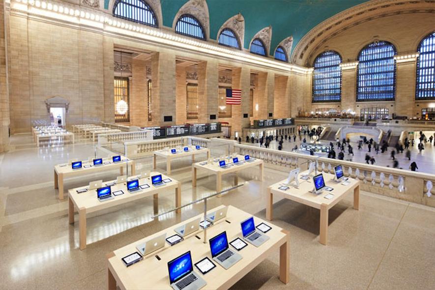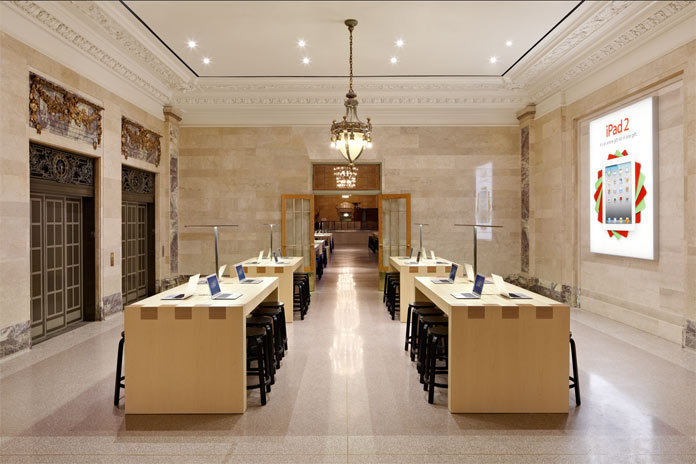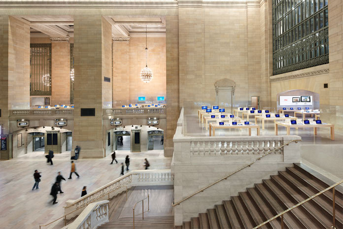 Открытие магазина Apple в здании Центрального вокзала Нью-Йорка обошлось его собственникам в колоссальные $7,5 млн. Этот “яблочный гигант” может похвастать высокими потолками и широкими пролетами. Торговая точка открыта в декабре 2011 года. За сутки ее посещают десятки тысяч людей, которых обслуживает 315 сотрудников.
