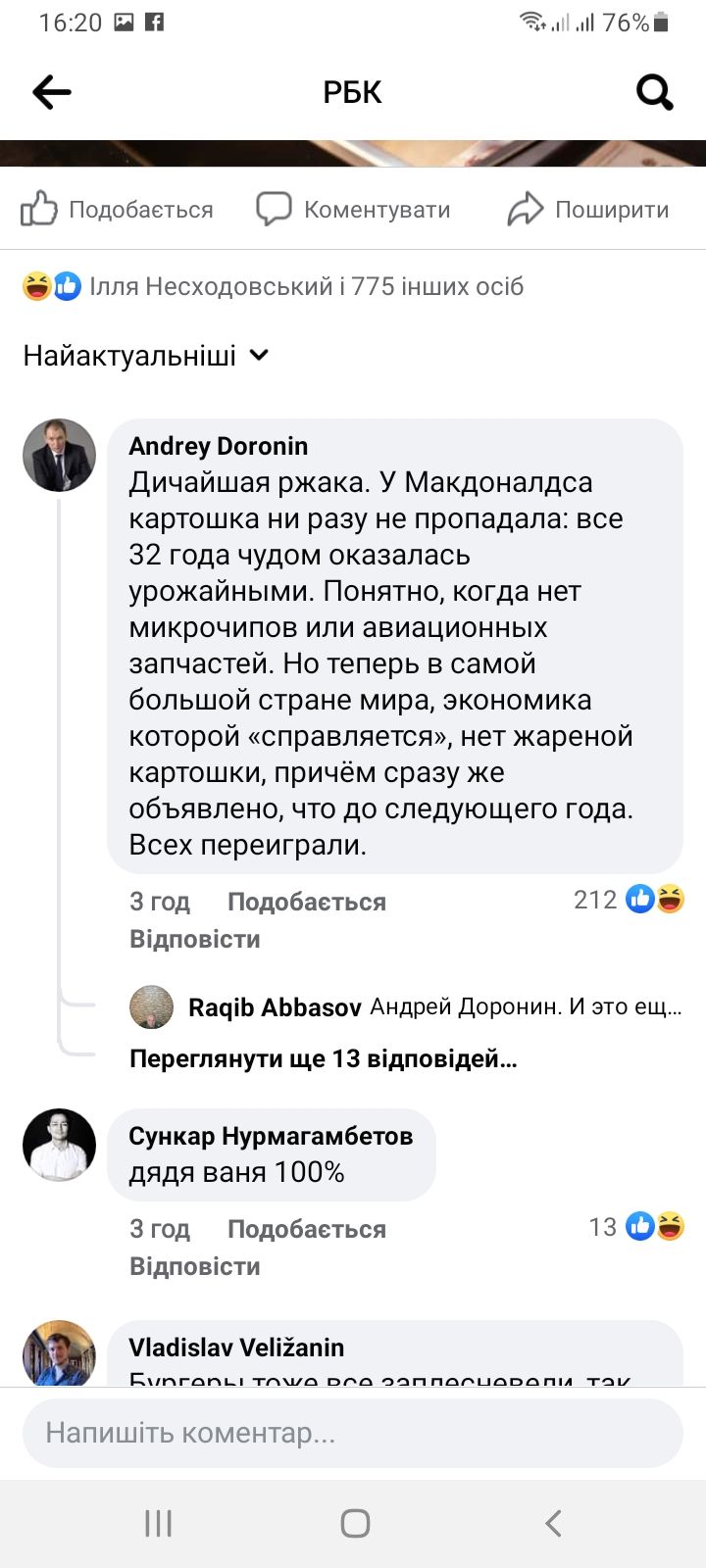 Наконец недавно стало известно, что в части вновь созданных ресторанов временно не будет картошки фри. Как сообщили в пресс-службе компании, иногда также может быть недоступна картошка по-селянски. Объясняется это тем, что прошлый год стал неурожайным для сортов картофеля, который используется для производства картофеля на предприятиях сети. «В последние 8 лет компания ориентировалась на российских поставщиков и закупала продукты у них. Кроме того, стал невозможен импорт с рынков, которые могли бы стать временными поставщиками картофеля для предприятий в Россию», — объяснили в компании. В полном объеме картофель появится в меню в начале следующего урожайного года осенью 2022 года. Потребители уже едко прокомментировали, что 32 года урожай был, а теперь – нет.